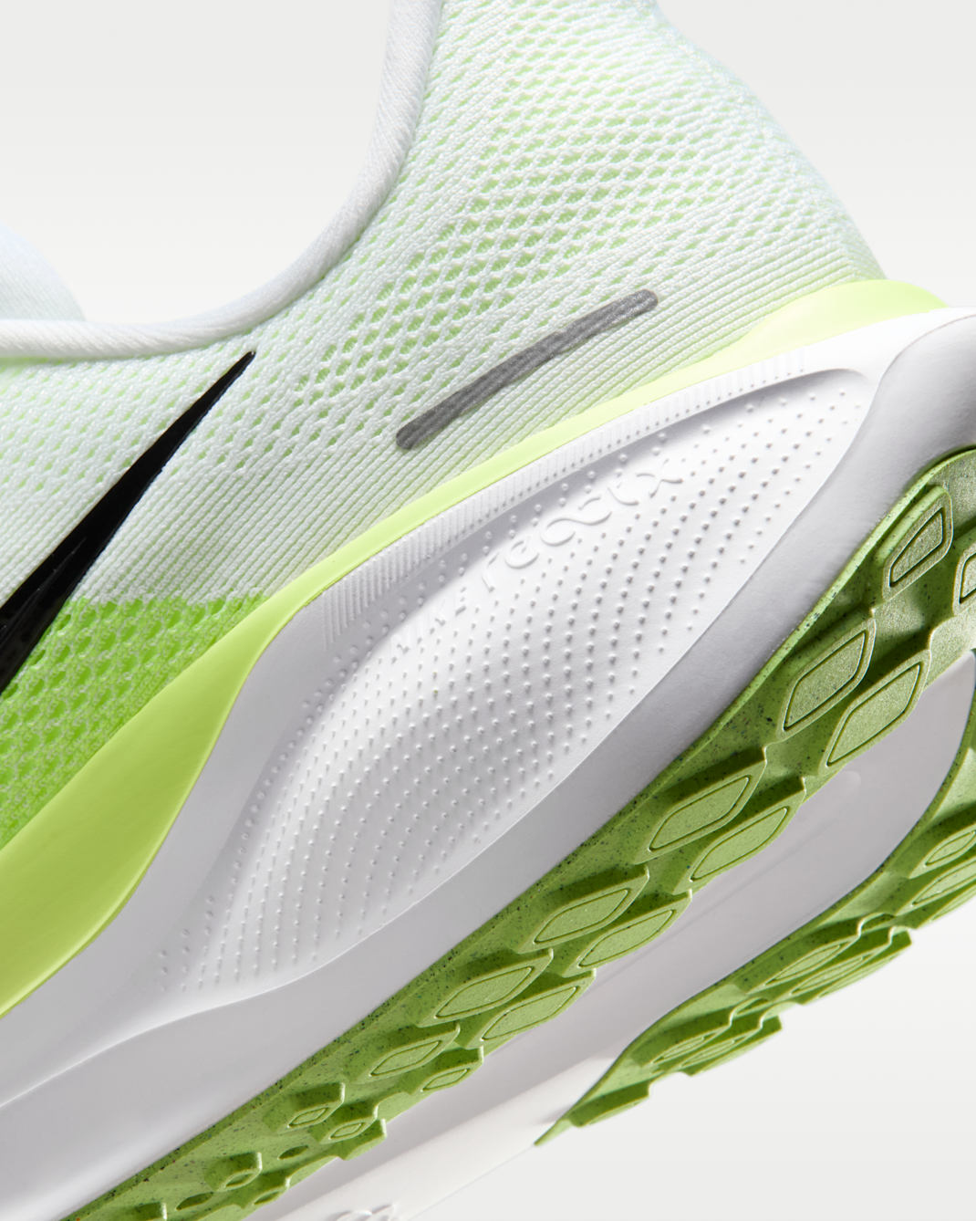 ReactX foam midsole surrounds forefoot and heel Air Zoom units for an energized ride. It's 13% more responsive than previous React technology.